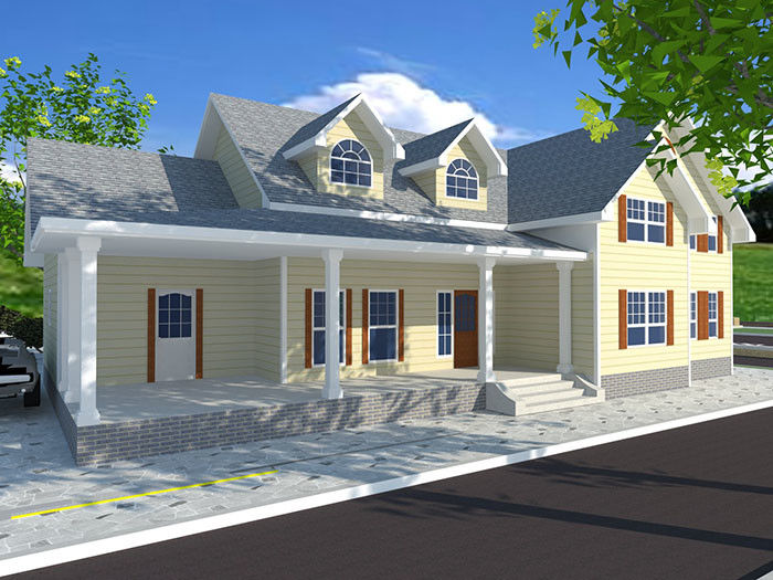 Die umweltfreundliche Stahlvilla eignet sich für verschiedene Anlässe und Szenarien. Sie kann als ständiger Wohnsitz, Ferienhaus oder Mietobjekt genutzt werden.Die Villa ist eine zweistöckige Stahlvilla, die leicht und schnell zusammengebaut und demontiert werden kann.Die Wand- und Dachmaterialien können Sandwich- oder Holzplatten sein, je nach Kundenpräferenz.mit einer Breite von mehr als 20 mm,Die Oberflächenbehandlung der Villa ist verzinkt, was sie gegen Rost und Korrosion widerstandsfähig macht.