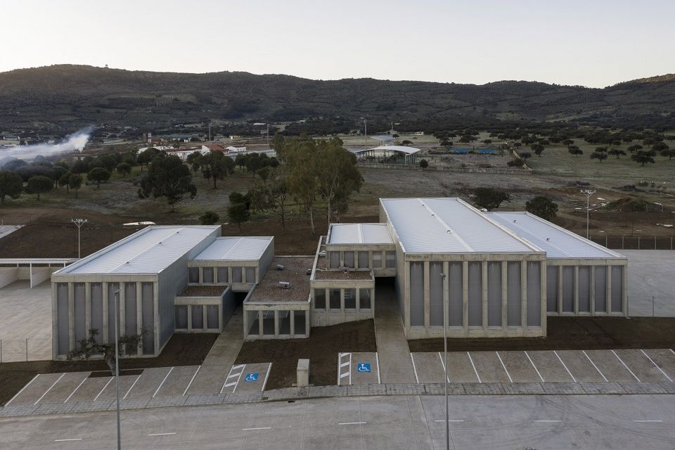 Das Unterrichtsgebäude in der Grundschule verbindet verschiedene Unterrichtsbereiche durch einen langen Korridor miteinander.
